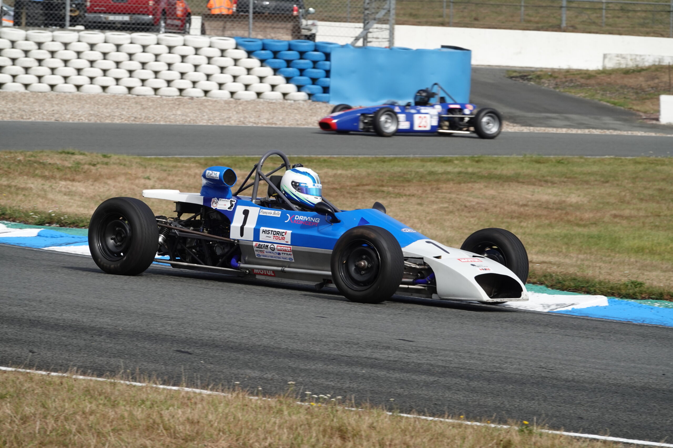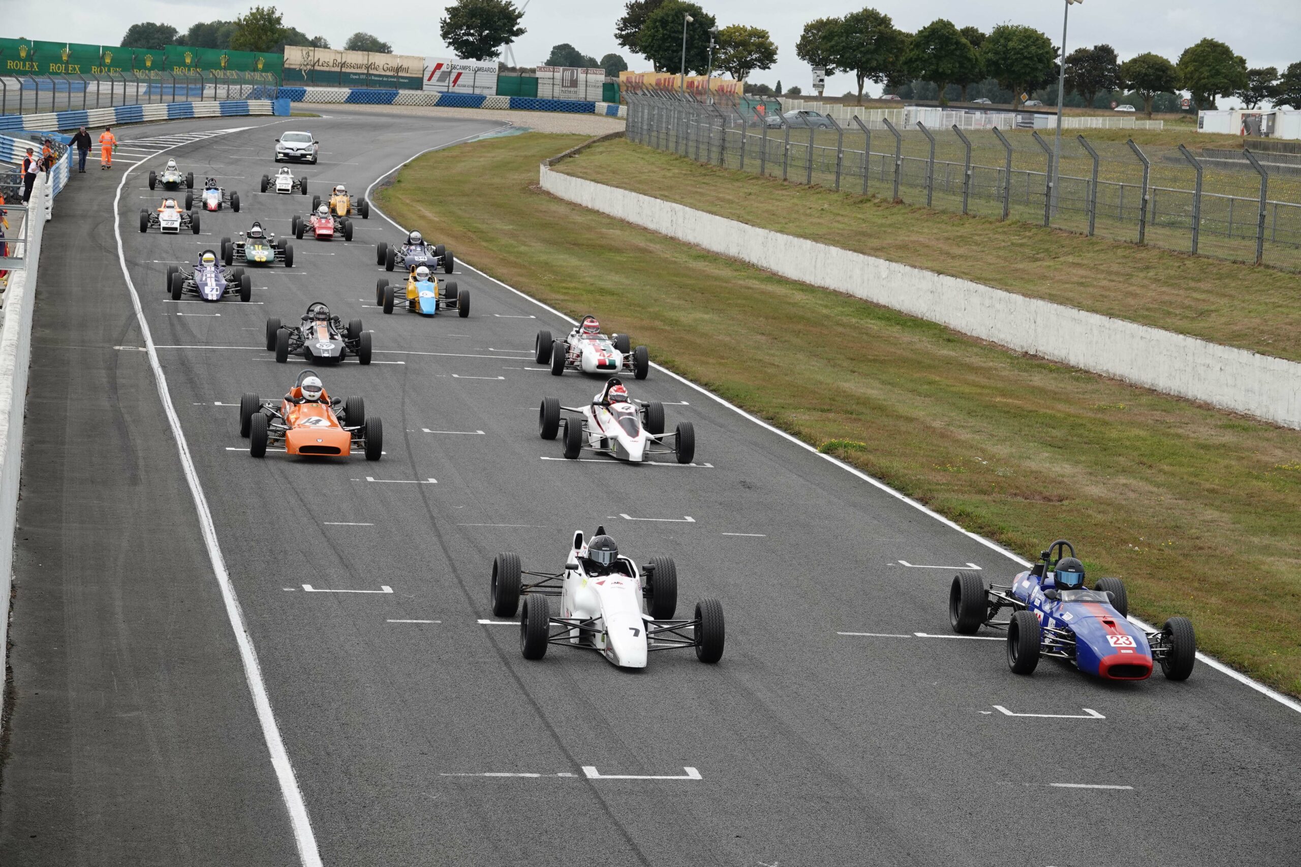 Excepté malheureusement pour l’infortuné Hervé Delaunay, tous les concurrents ont pu réparer, notamment Augustin Sanjuan et Jonathan Devaux qui a profité de sa non-participation à la deuxième séance d’essais libres pour changer de moteur de sa Crosslé avec l’aide non seulement de son mécanicien mais également de celle d’autres concurrents. Bel exemple de la solidarité et de l’esprit qui règne au niveau du Challenge Formula Ford Historic France. Ce sont donc 18 pilotes qui vont s’élancer pour cette unique séance de qualification d’une durée de 20 minutes.
