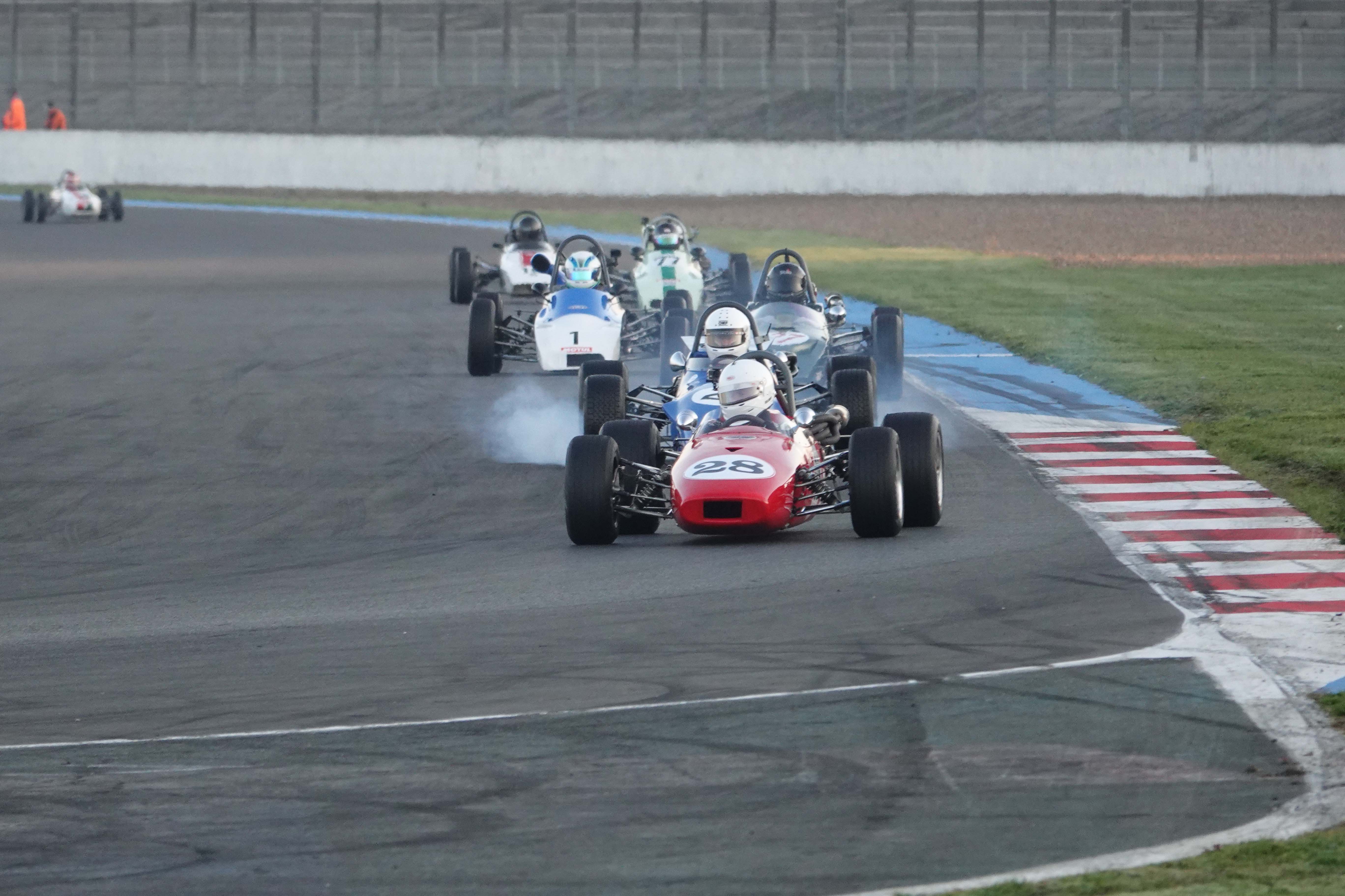 Le départ est placé sous enquête après que plusieurs concurrents l’ont anticipé. C’est le cas de Régis Prévost (McNamara FCA Mk3) et de l’Allemand Roland Fischer (Tecno F3), qui écopent tous deux d’un drive through.