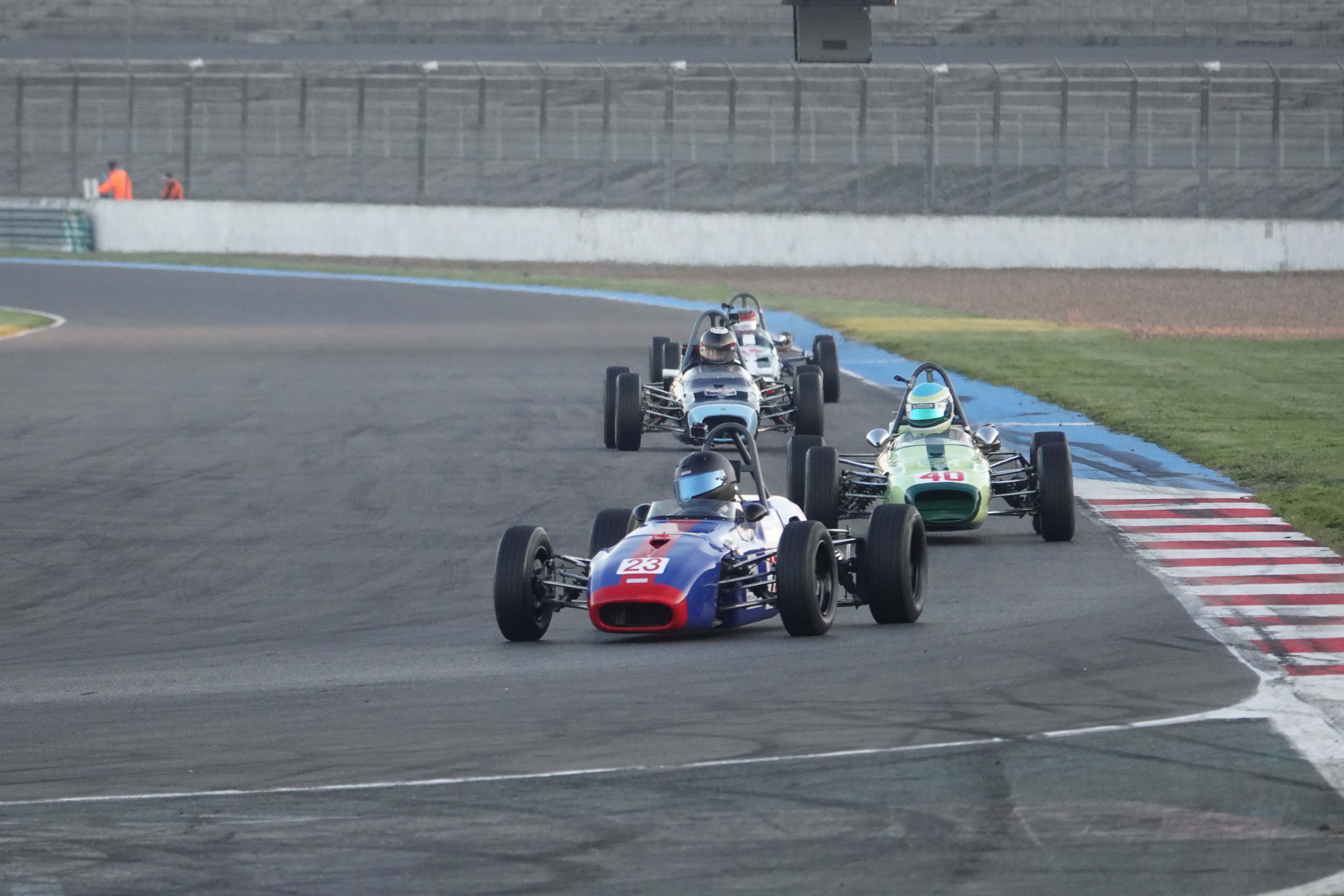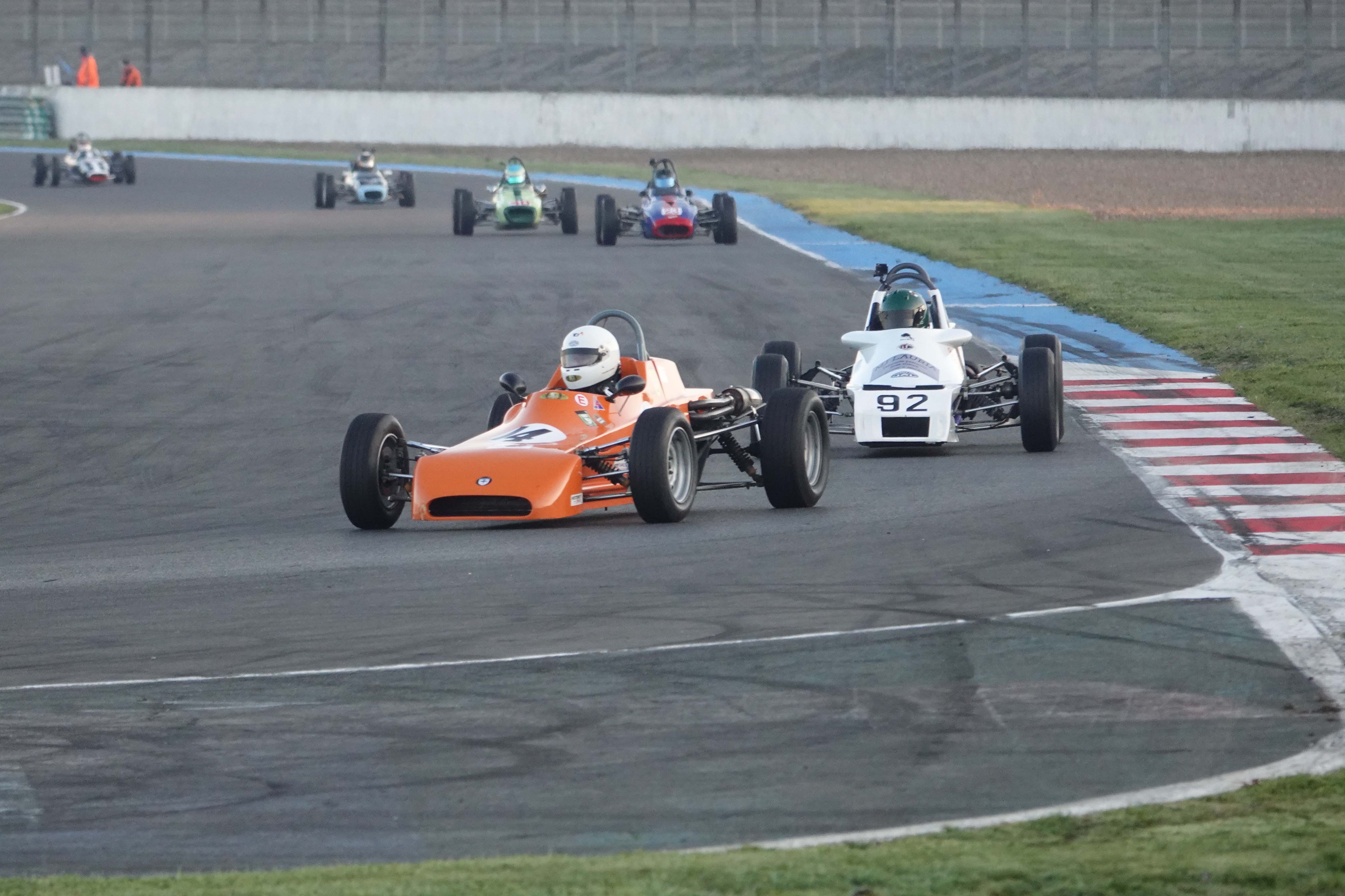 Gérard Pargamin (Van Diemen RF78) étant forfait, c’est le samedi matin, dès potron minet, que les choses sérieuses débutent pour les 26 concurrents du plateau consacré au Challenge Formula Ford Historic France. Sur une piste très froide, les pilotes enchaînent les tours pour faire tomber le chronomètre.
