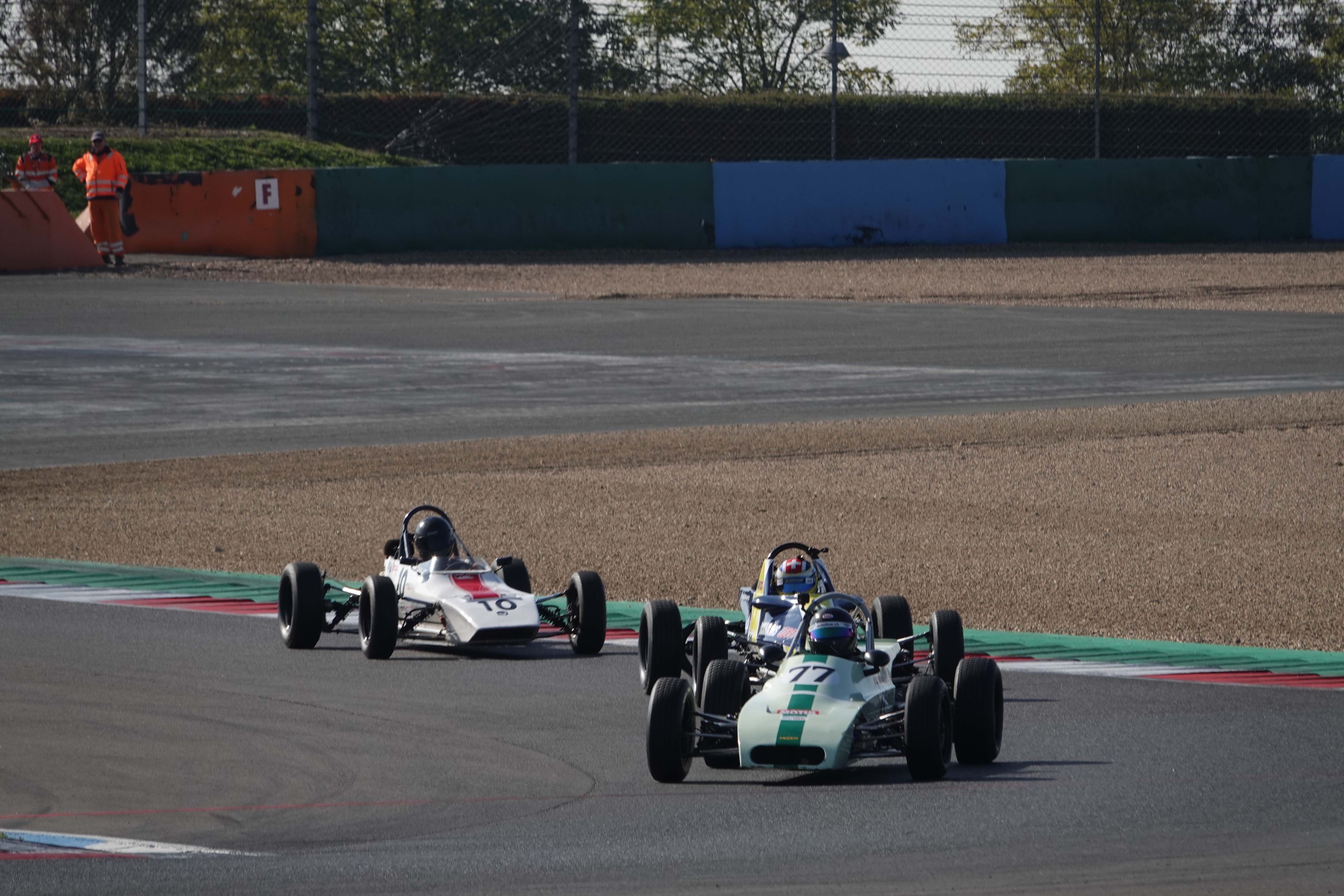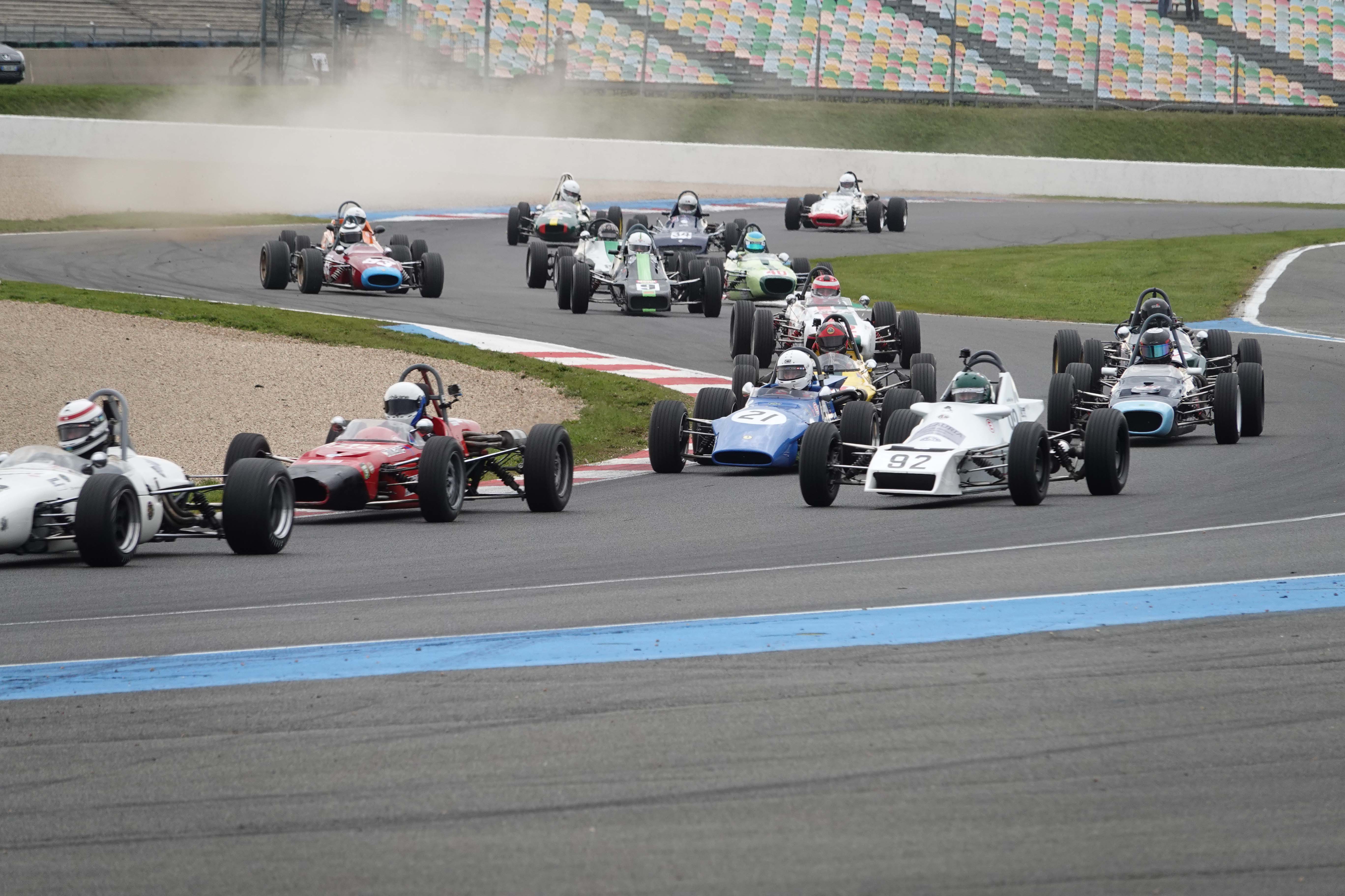 En ce qui concerne le Challenge Formula Ford Historic France sur les 31 voitures annoncées seules 27 monoplaces sont présentes aux vérifications techniques, manquent à l’appel les Belges Michel Dupont et Jean Pierre Baudart, Xavier Michel ainsi que les deux pilotes de F3 1000cc Thomas Jamin et le Britannique Keith Messer.