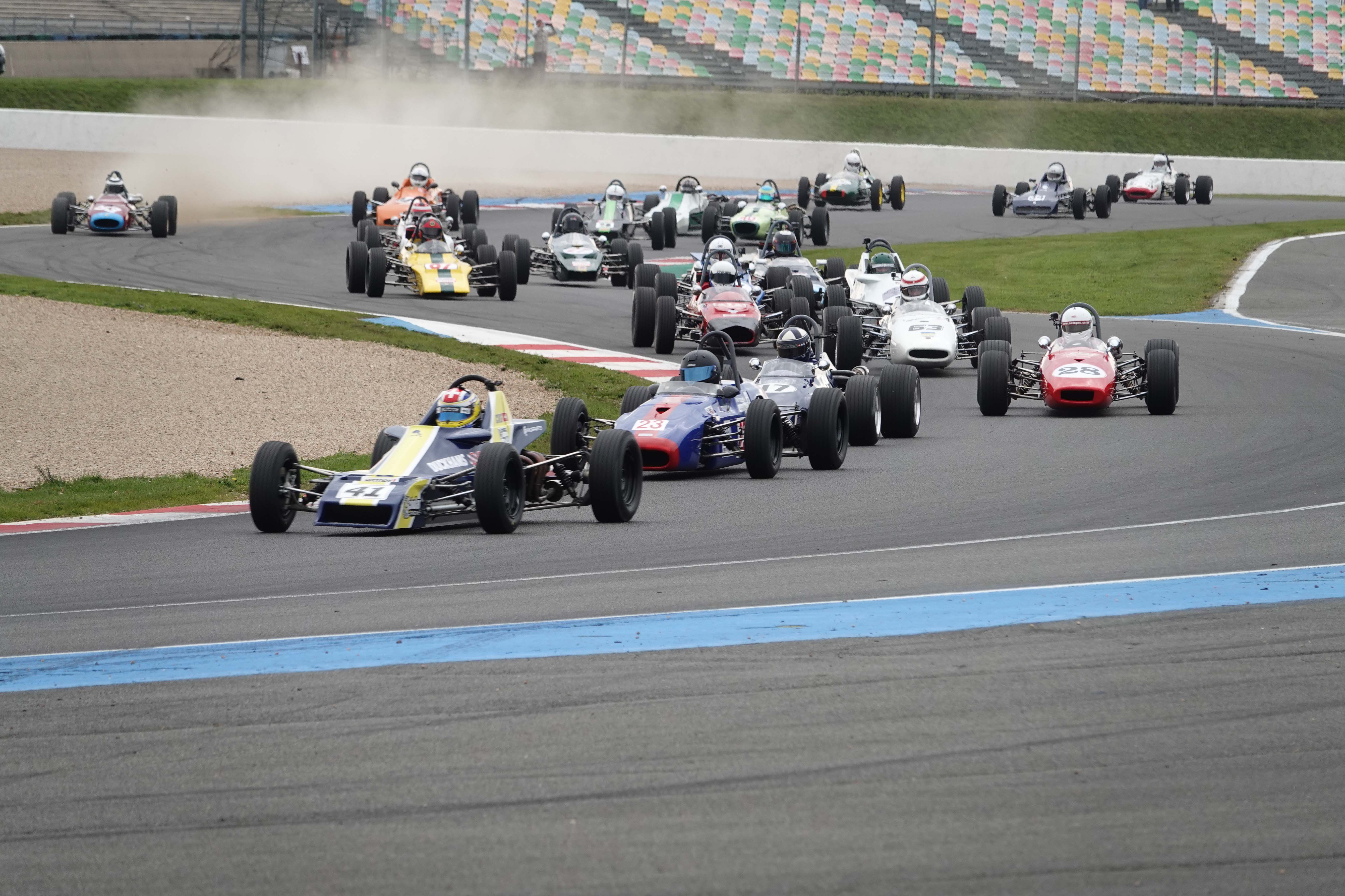 Le départ est placé sous enquête après que plusieurs concurrents l’ont anticipé. C’est le cas de Régis Prévost (McNamara FCA Mk3) et de l’Allemand Roland Fischer (Tecno F3), qui écopent tous deux d’un drive through.