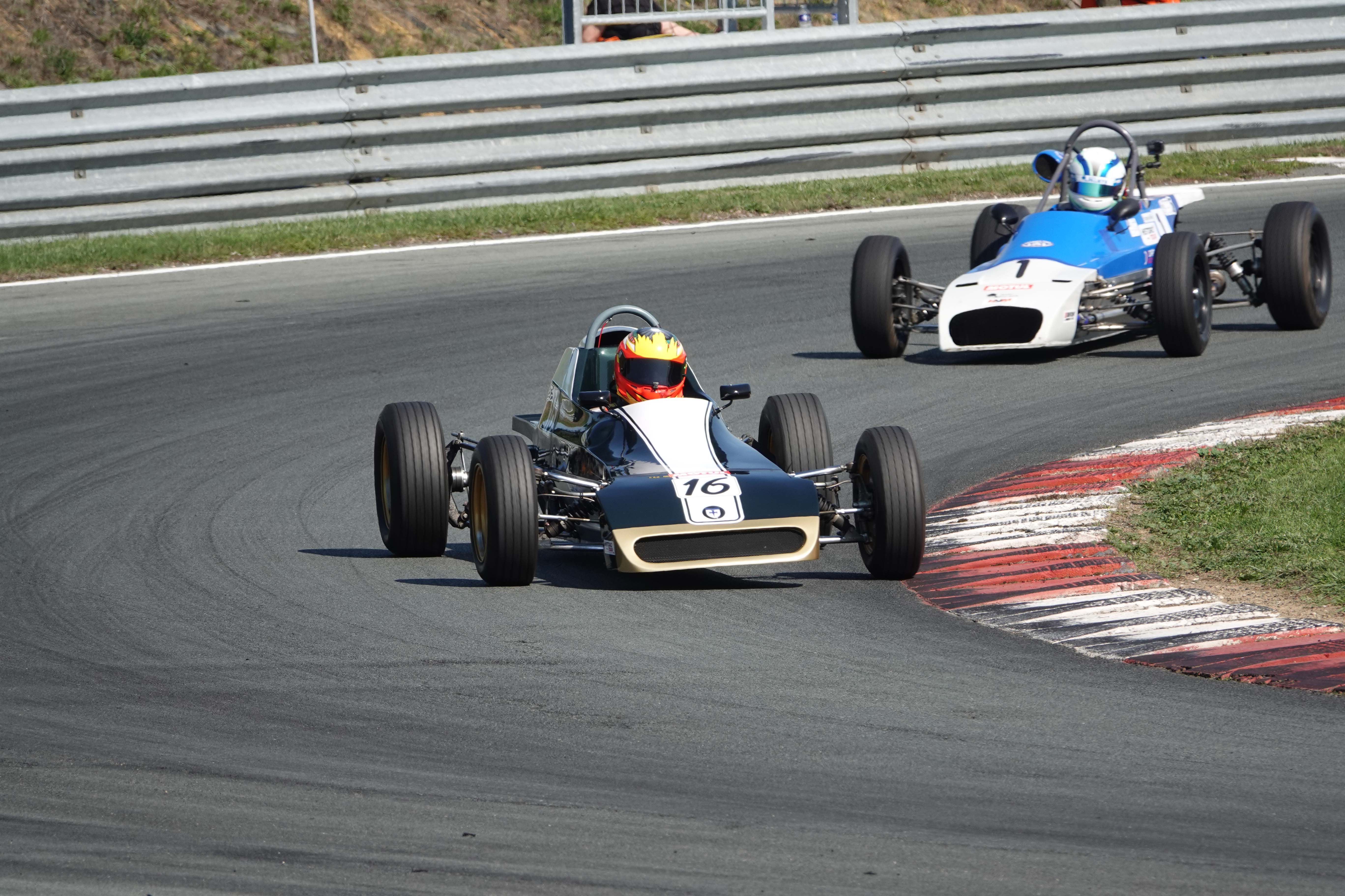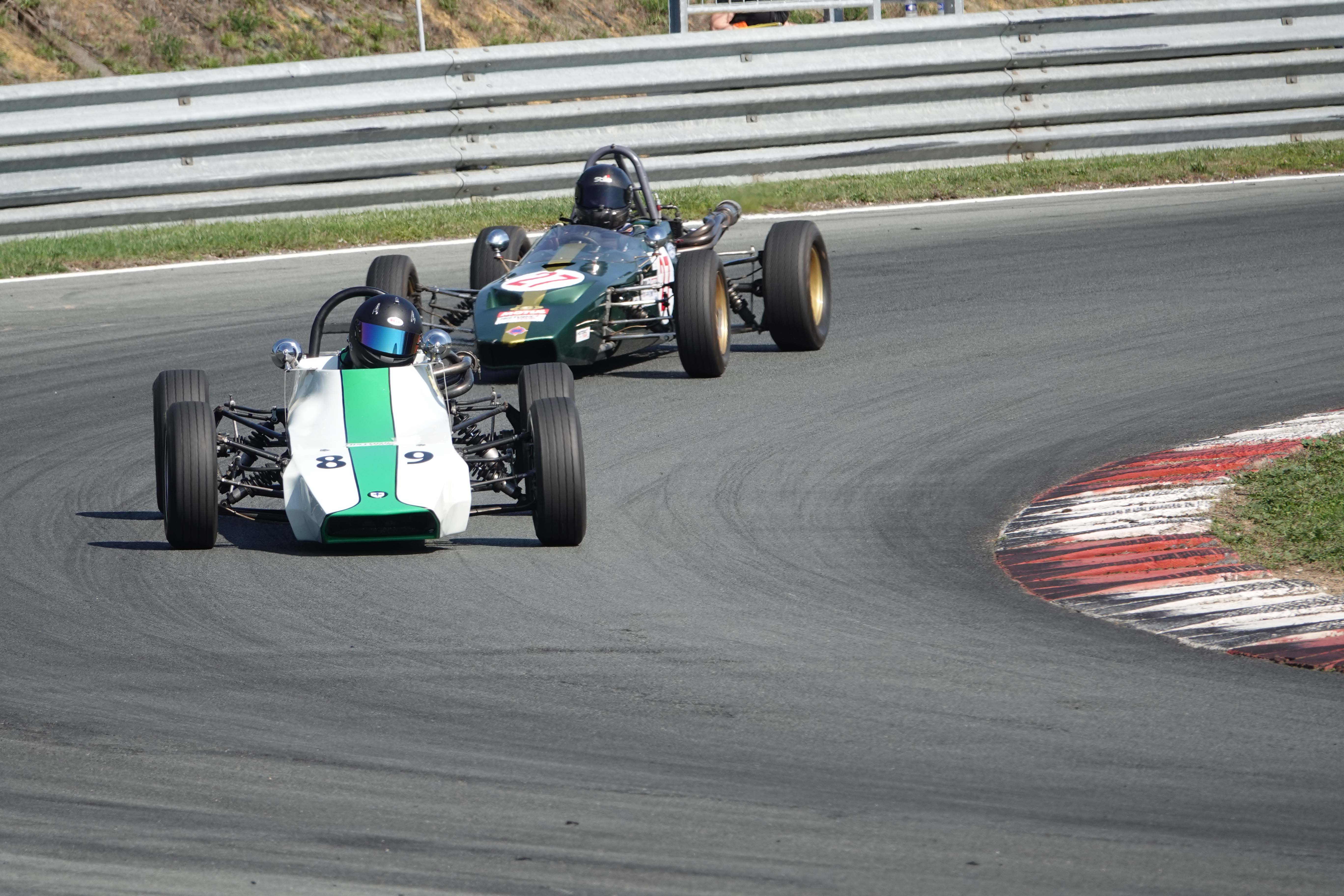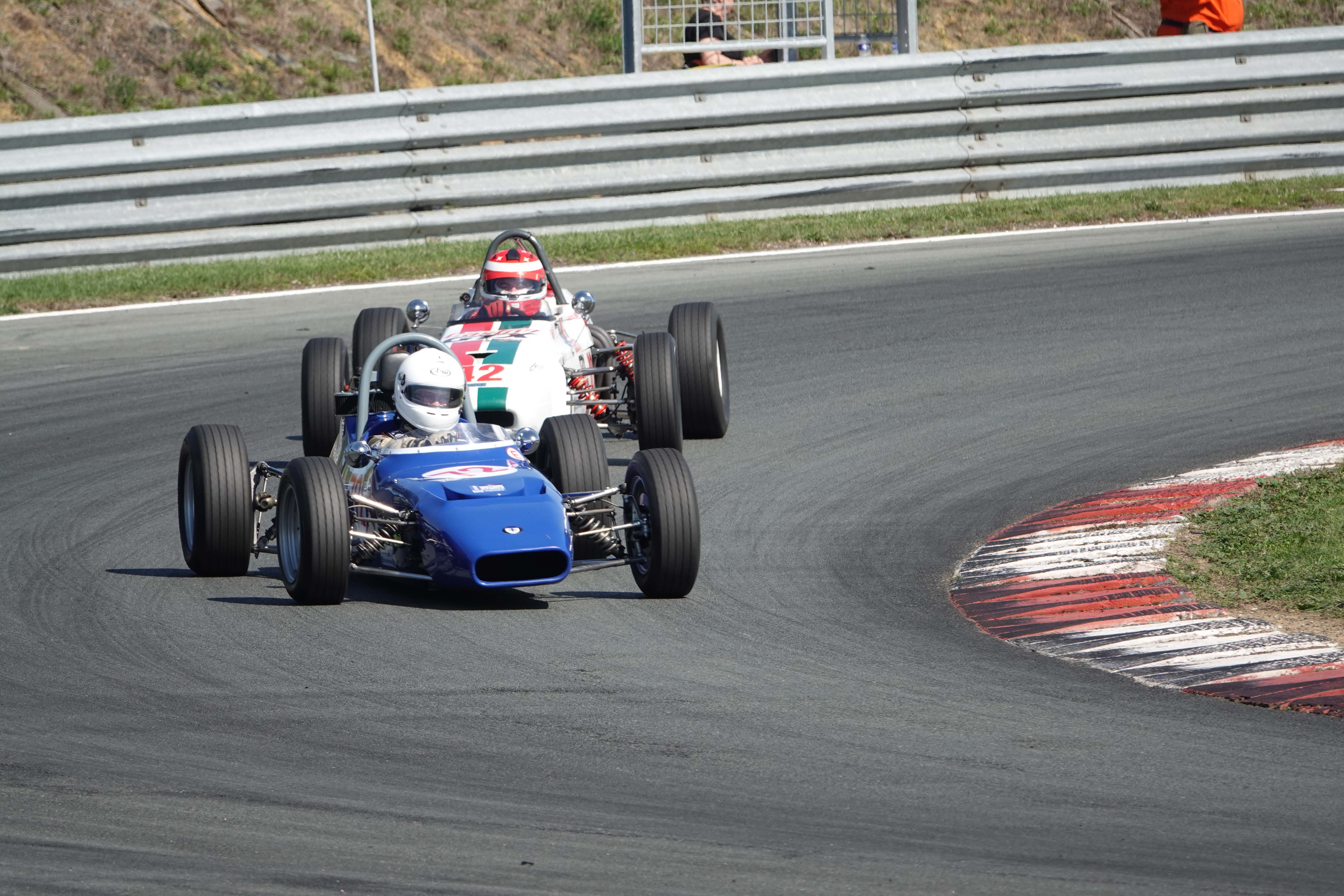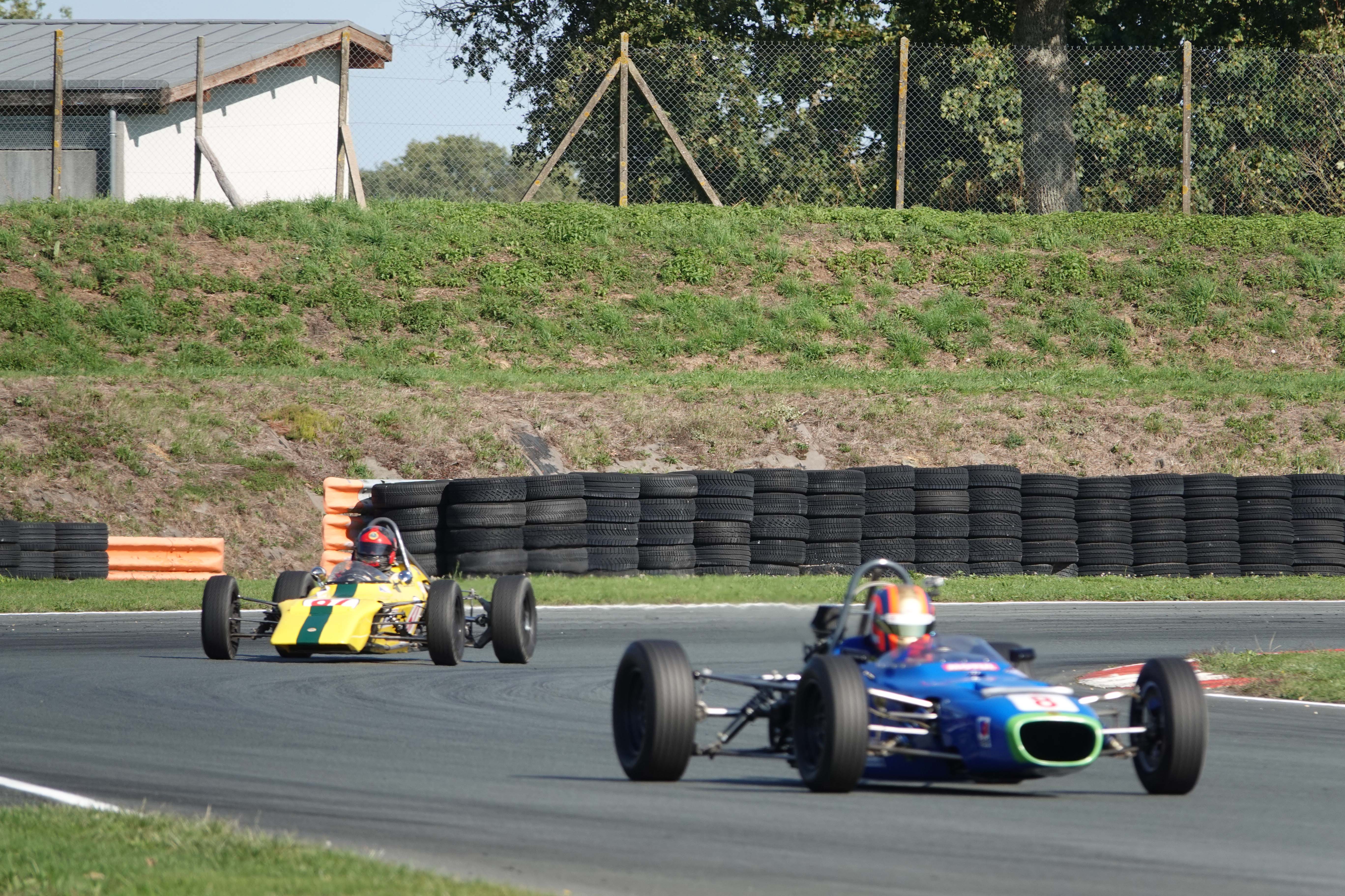 Juste avant le changement de position, François Belle (Lola T 540 E) encore devant Jonathan Devaux (Crosslé 16 F)