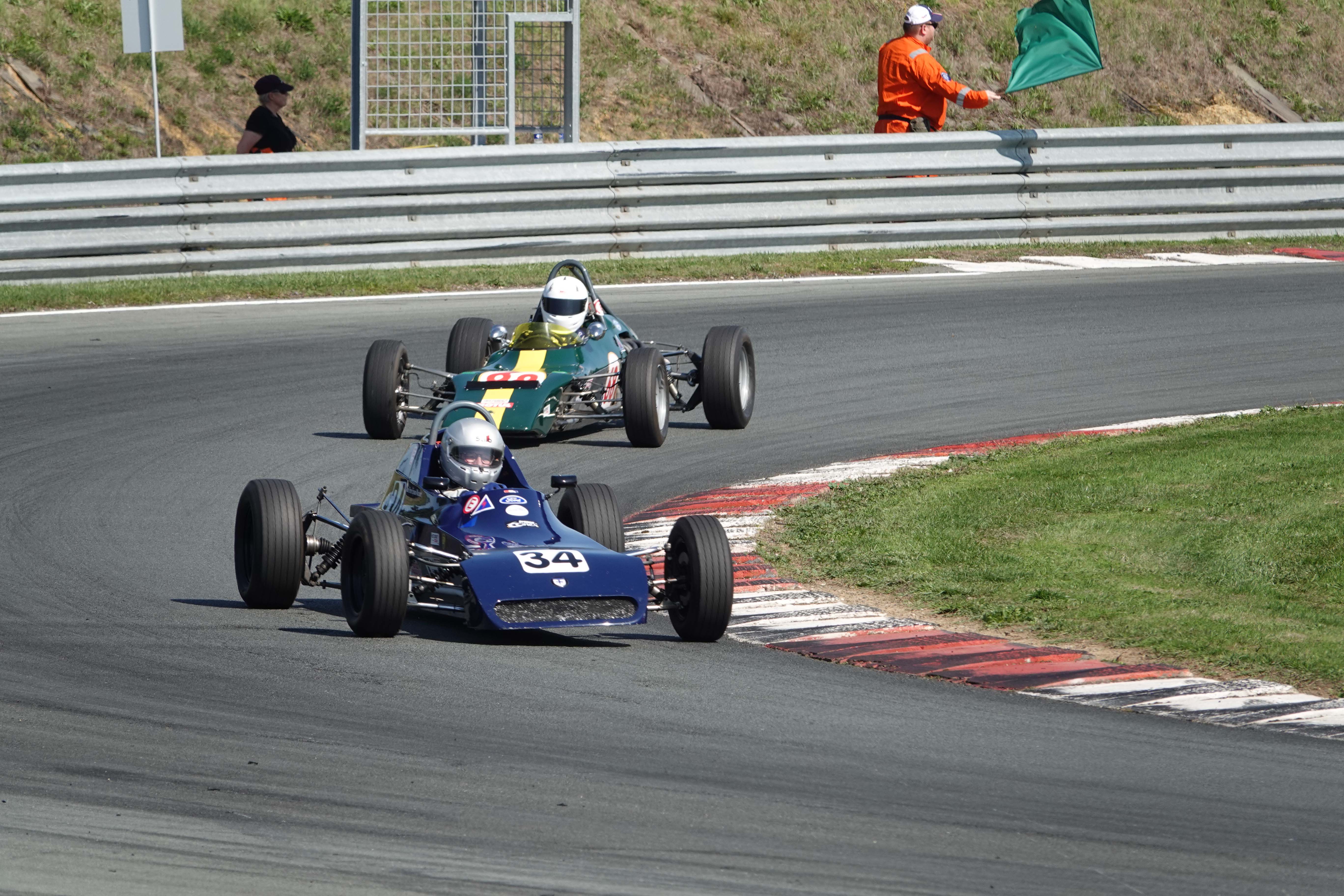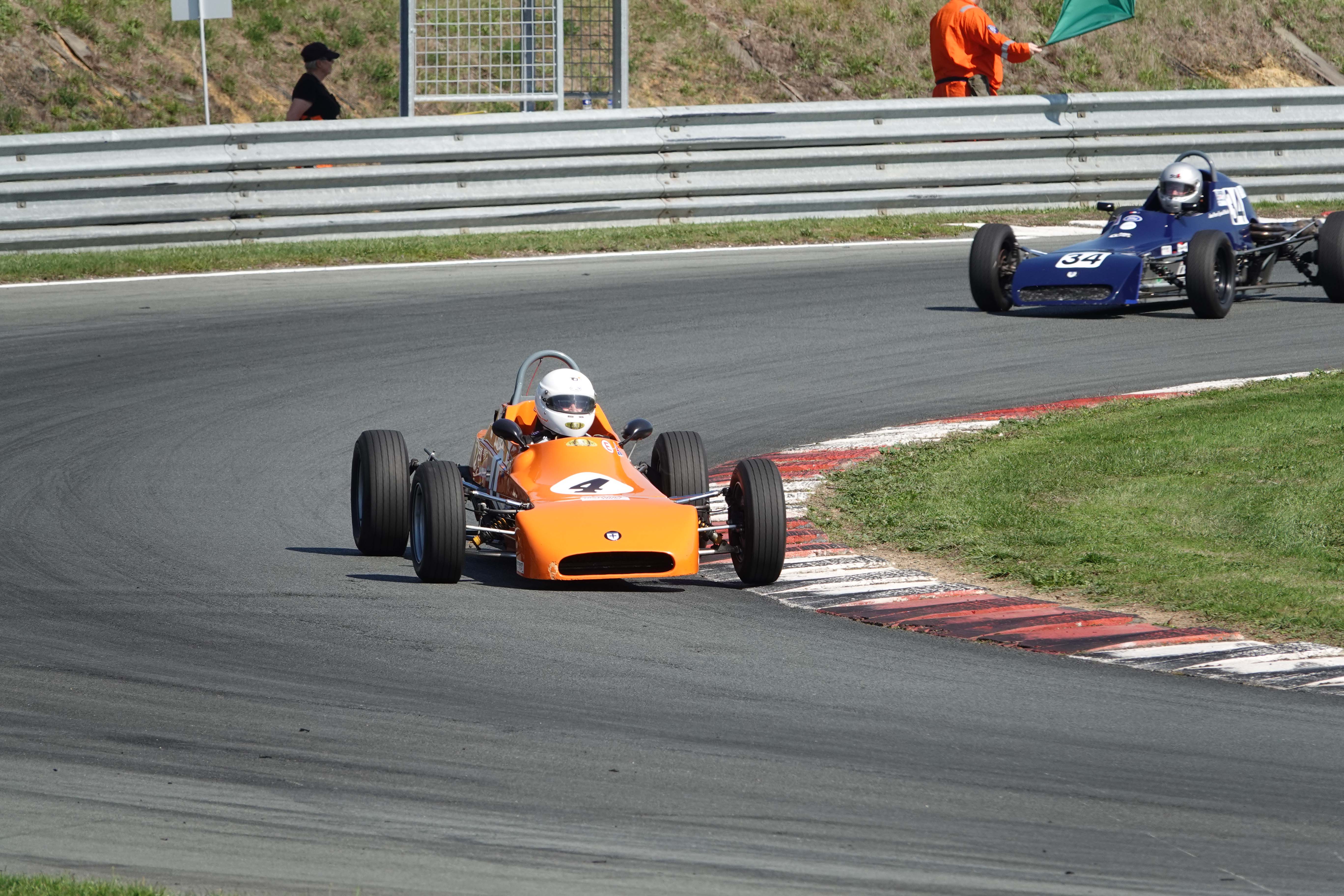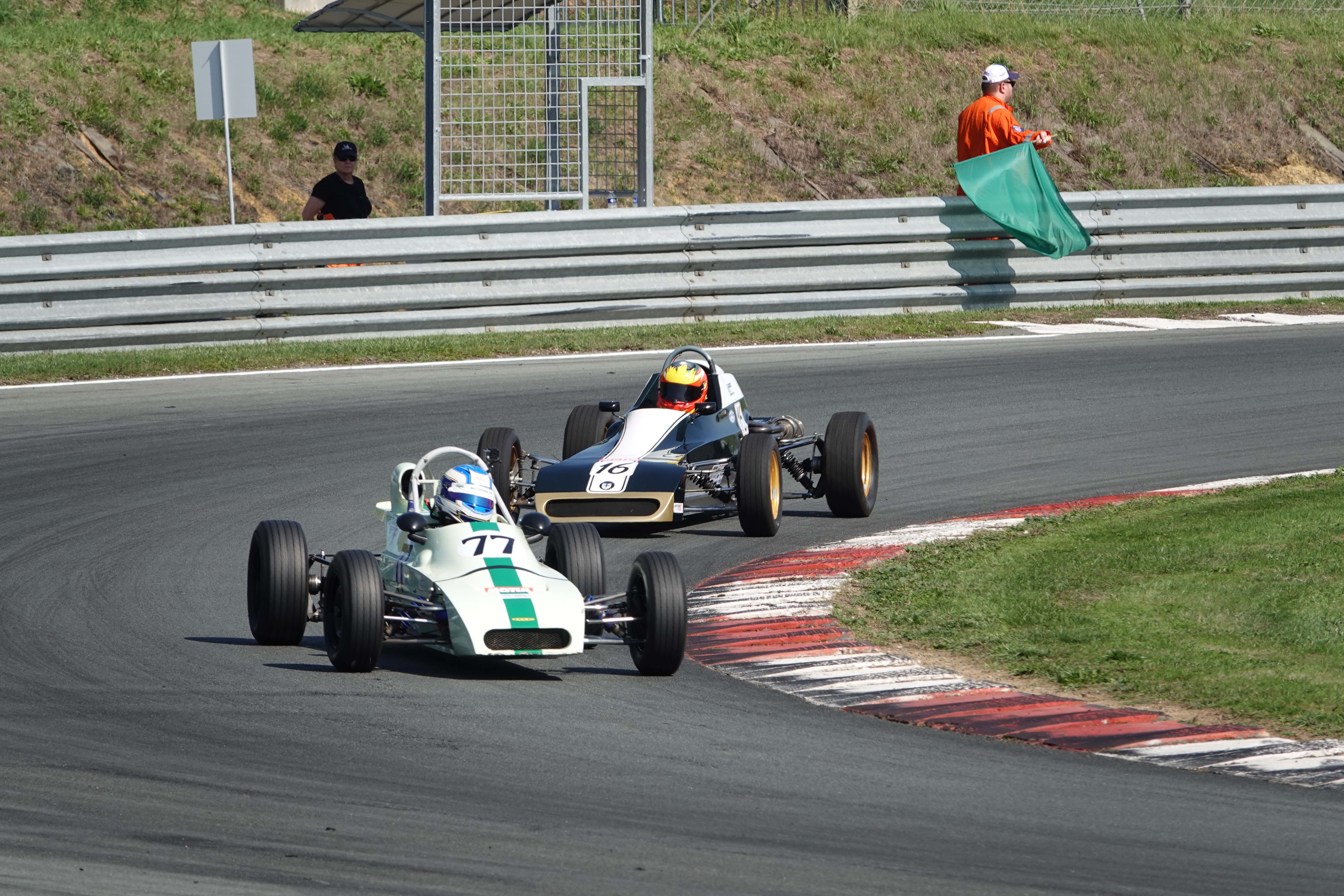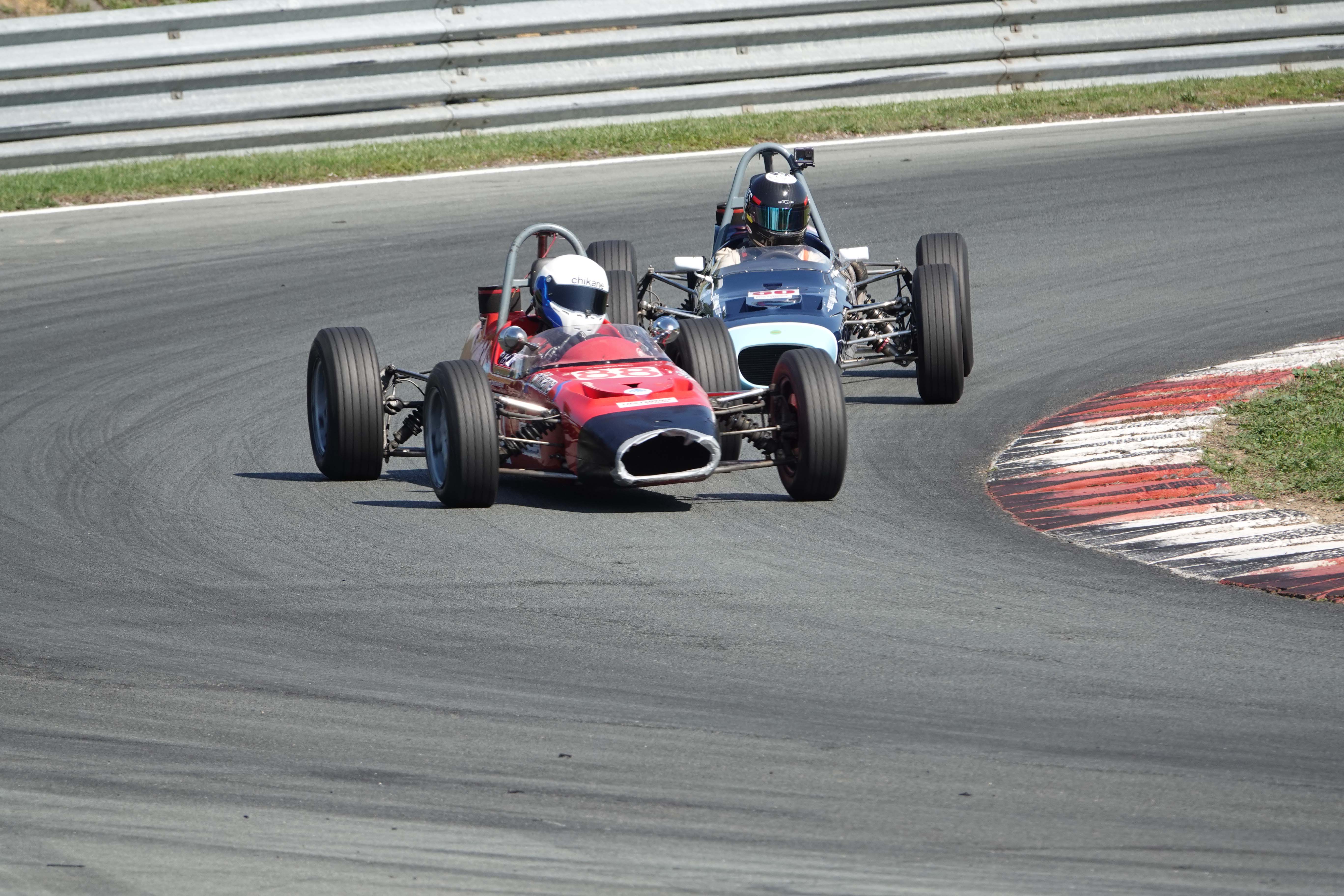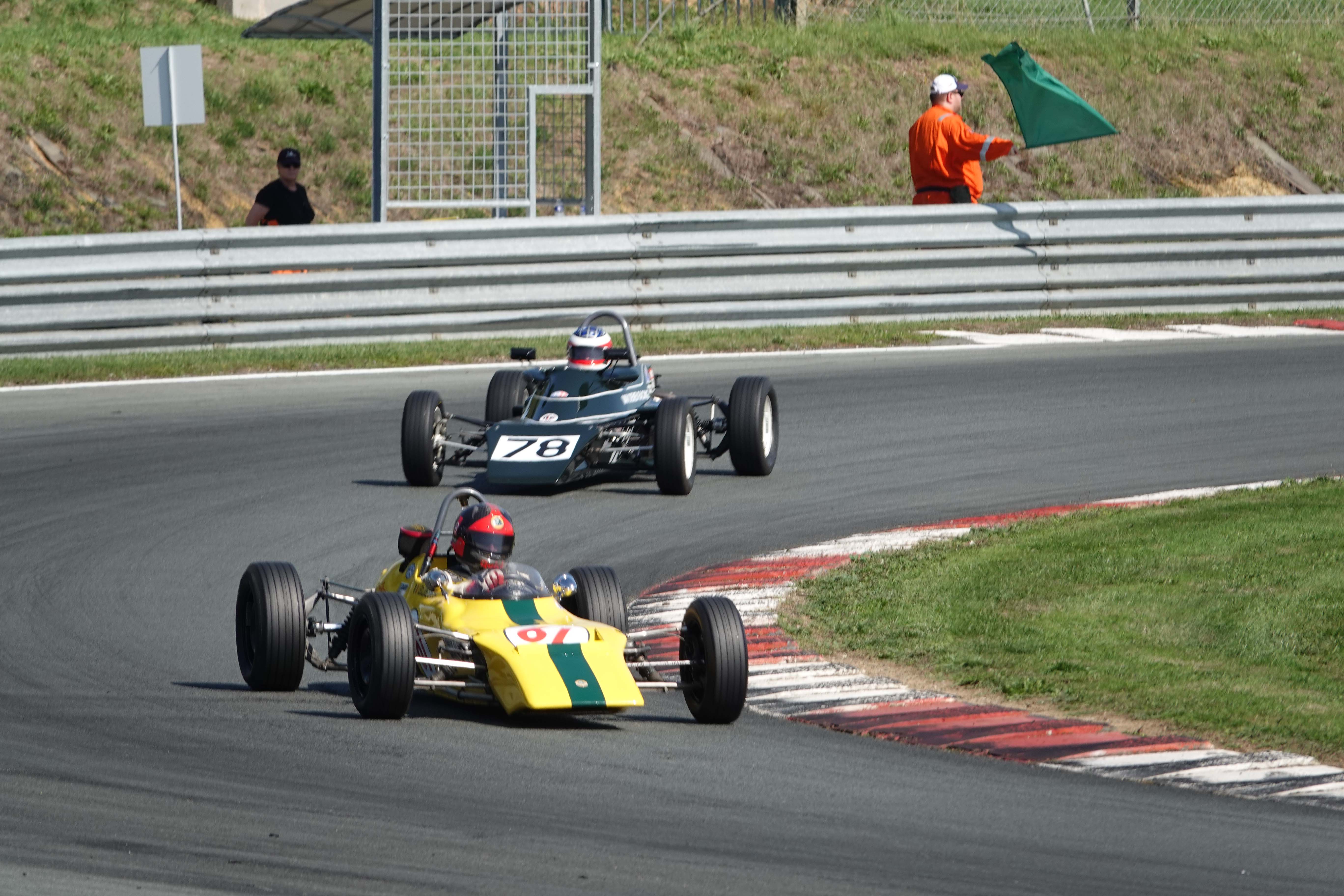 Juste avant le changement de position, François Belle (Lola T 540 E) encore devant Jonathan Devaux (Crosslé 16 F)