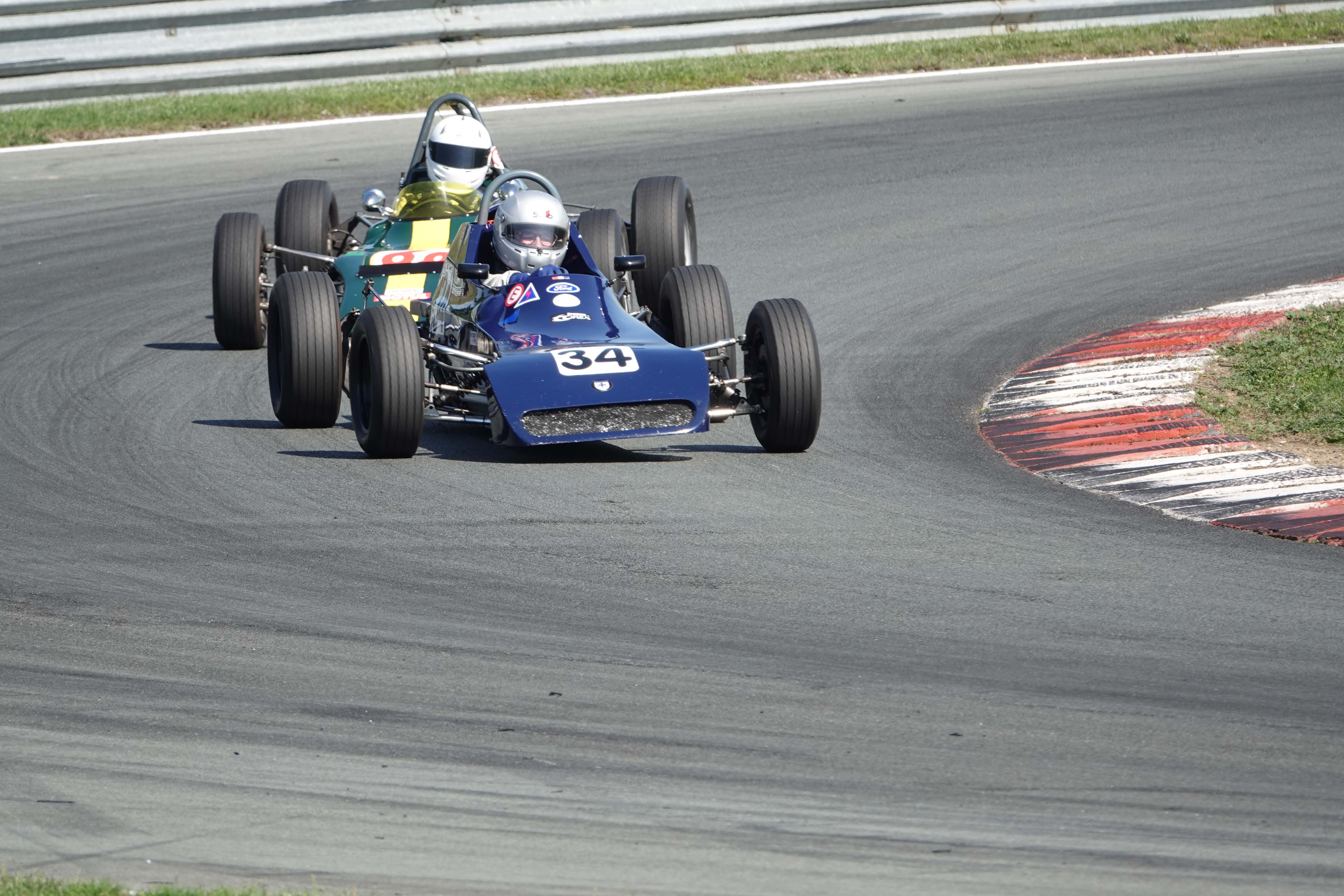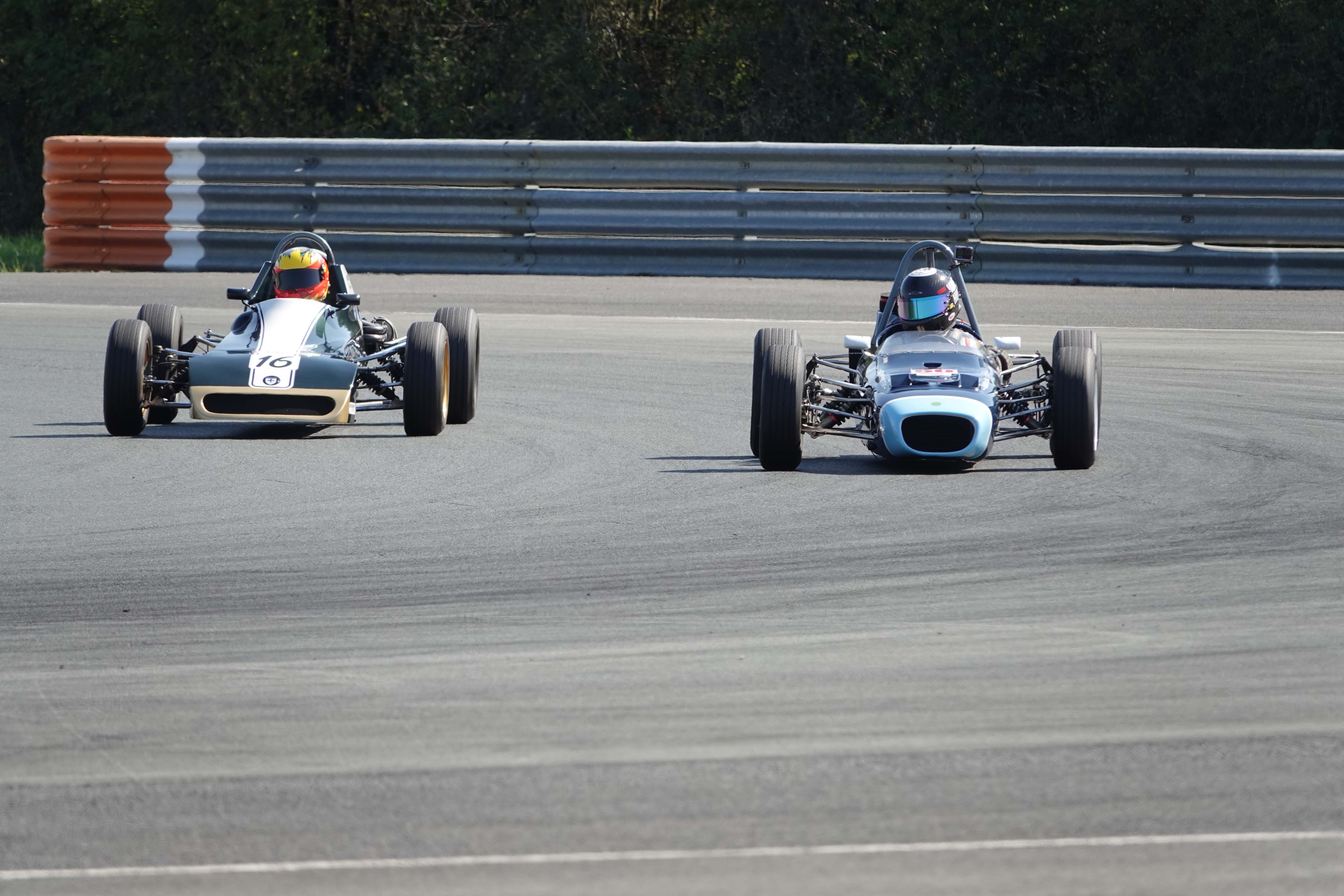 Juste avant le changement de position, François Belle (Lola T 540 E) encore devant Jonathan Devaux (Crosslé 16 F)