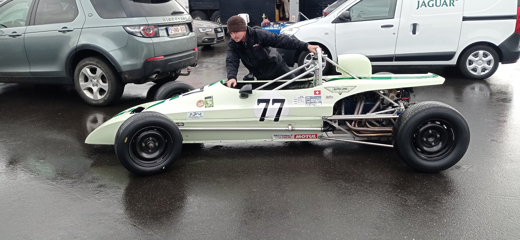 Sur une piste sèche mais froide, François Belle (Lola T 540 E) 3ème temps toutes catégories confondues est déjà leader de la classe B (pre-82) alors que Jonathan Devaux (Crosslé 16 F) 4ème temps en fait de même au niveau de la classe A (pre-74).